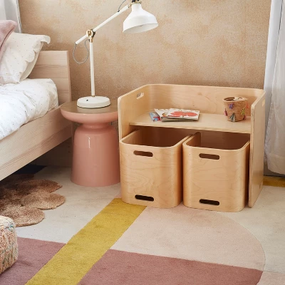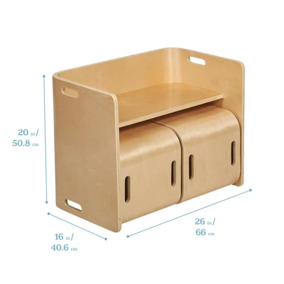 The ECR4Kids Bentwood Multipurpose Table and Chair Set is the perfect blend of modern design, versatility, and comfort for any learning environment. The set comes with one sturdy table and two chairs ideal for libraries, preschools, and homes. The possibilities are endless with the adaptable furniture set which can be used as tables, chairs, stools, or shelves. The chairs have two seat heights to accommodate growing children. Child-sized furniture promotes student confidence and independence, and a dedicated workspace for learning encourages children to develop good work habits. Kids take ownership of their learning as they navigate a child-sized environment allowing them to enjoy a book, snack, or seated rest while feeling comfortable and confident in their bodies. When learning time is over, chairs can be pushed under kids’ desks to save valuable floor space. The lightweight set features built-in handles for easy transportation between rooms. Bentwood furniture is crafted from sustainably harvested birch plywood that is molded into shape creating a durable natural hardwood, with a tough UV lacquer that seals the wood surface and resists scratching. A UV inhibitor makes furniture resistant to ultraviolet light and yellowing. Pair with ECR4Kids Birch Classroom Furniture to complete the set; sold separately. | Table Dimensions: 26.6″L x 20″W x 16″H – 4.5″ or 15.5″ Seat Height | Chair Dimensions: 12″L x 12″W x 12″H – 4.5″ or 7″ Seat Height |