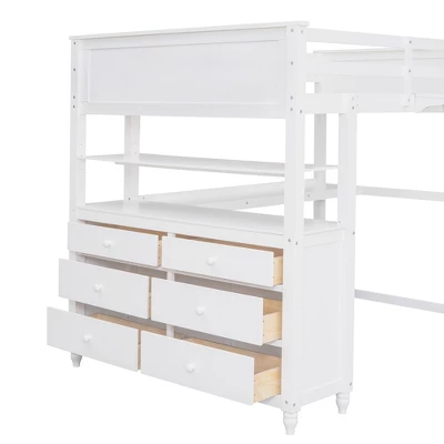 - 【Versatility】The space under the full size loft bed is a great place for you to read, do homework or play and create your own world of exploration. The loft bed comes with drawers and a desk to help store books, display decorations or place a laptop. The ladder can be placed on the left or right depending on preference.
