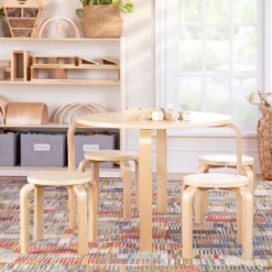 Flash Furniture Kids Natural Solid Wood Table And Chair Set For Classroom, Playroom, Kitchen